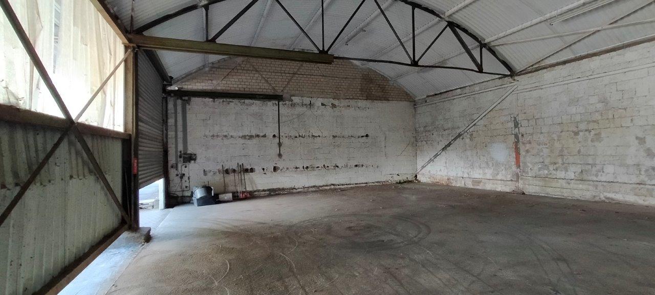 Die linke Kalthalle bietet ca. 190 m² Fläche. Im oberen hinteren Bereich ist Tageslichteinfall gegeben. Zwei Stützen sind vorhanden, die übrige Fläche ist weitgehend frei. Die Halle verfügt über zwei elektrische Rolltore.