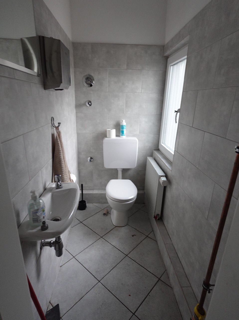 Das Bürogebäude ist mit doppelt (bzw. teilweise dreifach) verglasten Fenstern aus dem Jahr 2012 ausgestattet. Es verfügt über zwei getrennte WC-Anlagen, jeweils mit Waschtisch und Fenster. Die Räume sind für den Büroalltag vorbereitet und verfügen über eine ausreichende Anzahl an Steckdosen sowie LAN-Anschlüsse. Eine Teeküche ist vorhanden. Die Beheizung des Bürogebäudes erfolgt über eine Gasheizung. Die Böden sind überwiegend gefliest. Das Ober- und das Untergeschoss verfügen über getrennte Zugänge von außen.