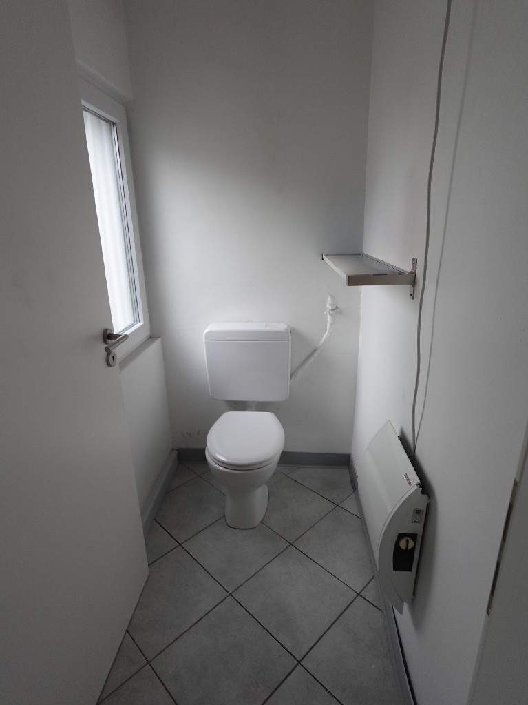 • Das Bürogebäude ist mit doppelt (bzw. teilweise dreifach) verglasten Fenstern aus dem Jahr 2012 ausgestattet. Es verfügt über zwei getrennte WC-Anlagen, jeweils mit Waschtisch und Fenster. Die Räume sind für den Büroalltag vorbereitet und verfügen über eine ausreichende Anzahl an Steckdosen sowie LAN-Anschlüsse. Eine Teeküche ist vorhanden. Die Beheizung des Bürogebäudes erfolgt über eine Gasheizung. Die Böden sind überwiegend gefliest. Das Ober- und das Untergeschoss verfügen über getrennte Zugänge von außen.