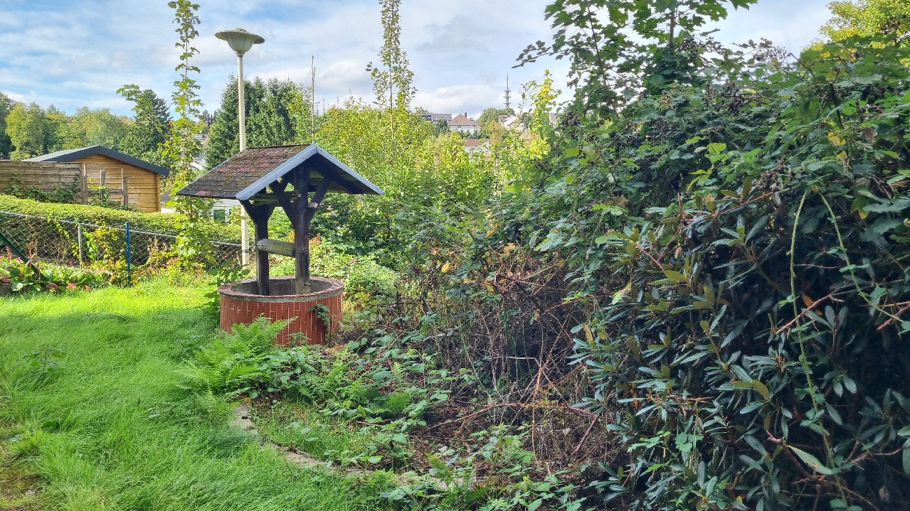 Die Außenanlage dieser Immobilie präsentiert sich mit einen sehr großem Garten, inklusive Terrasse und Grünfläche und bietet einen attraktiven Freisitz mit einem Brunnen.