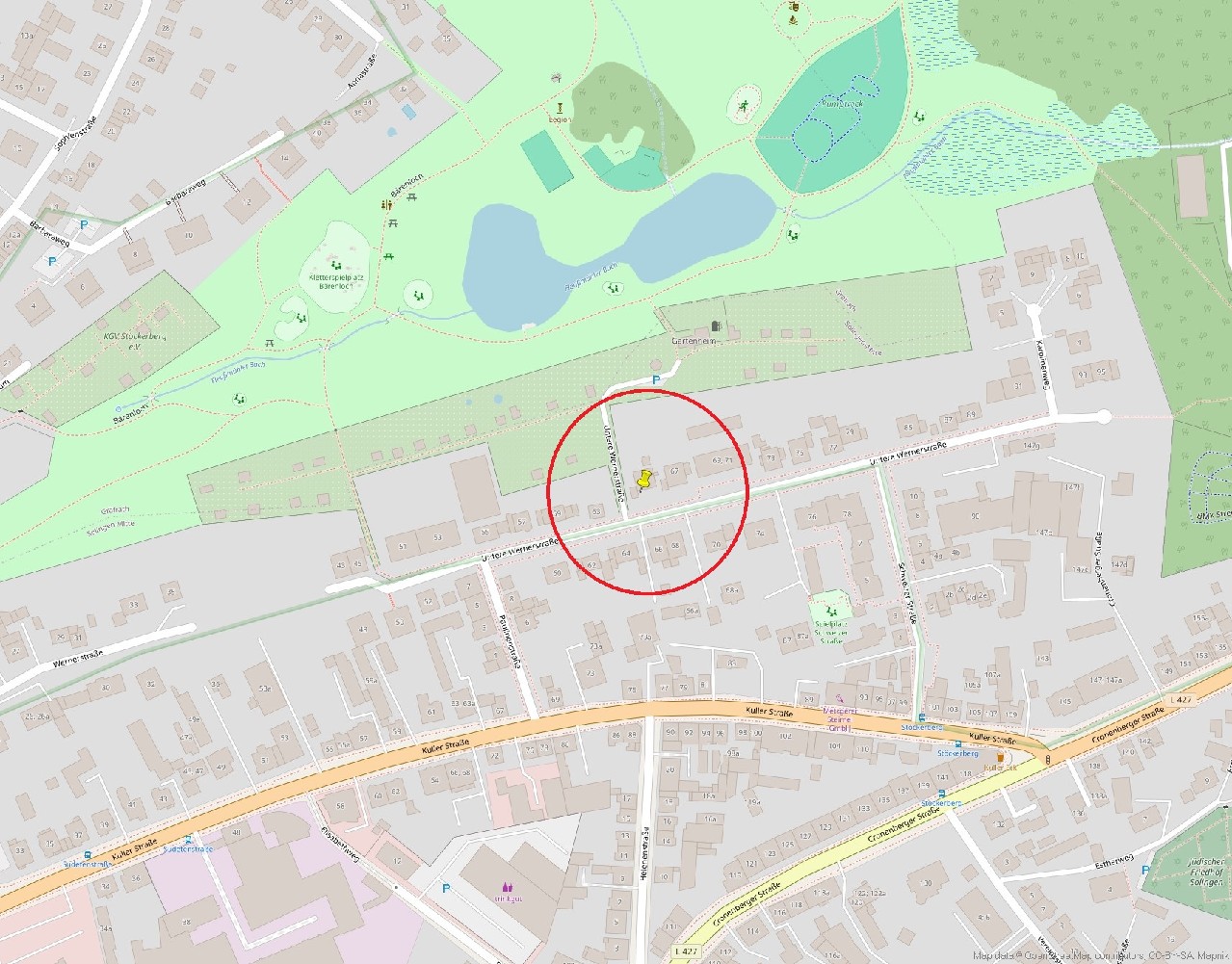• Das Mehrfamilienhaus befindet sich in Solingen-Mitte, in einer ruhigen Anliegerstraße. Die Umfeldbebauung ist überwiegend durch gepflegte Ein- und Mehrfamilienhäuser in offener Bauweise geprägt.
