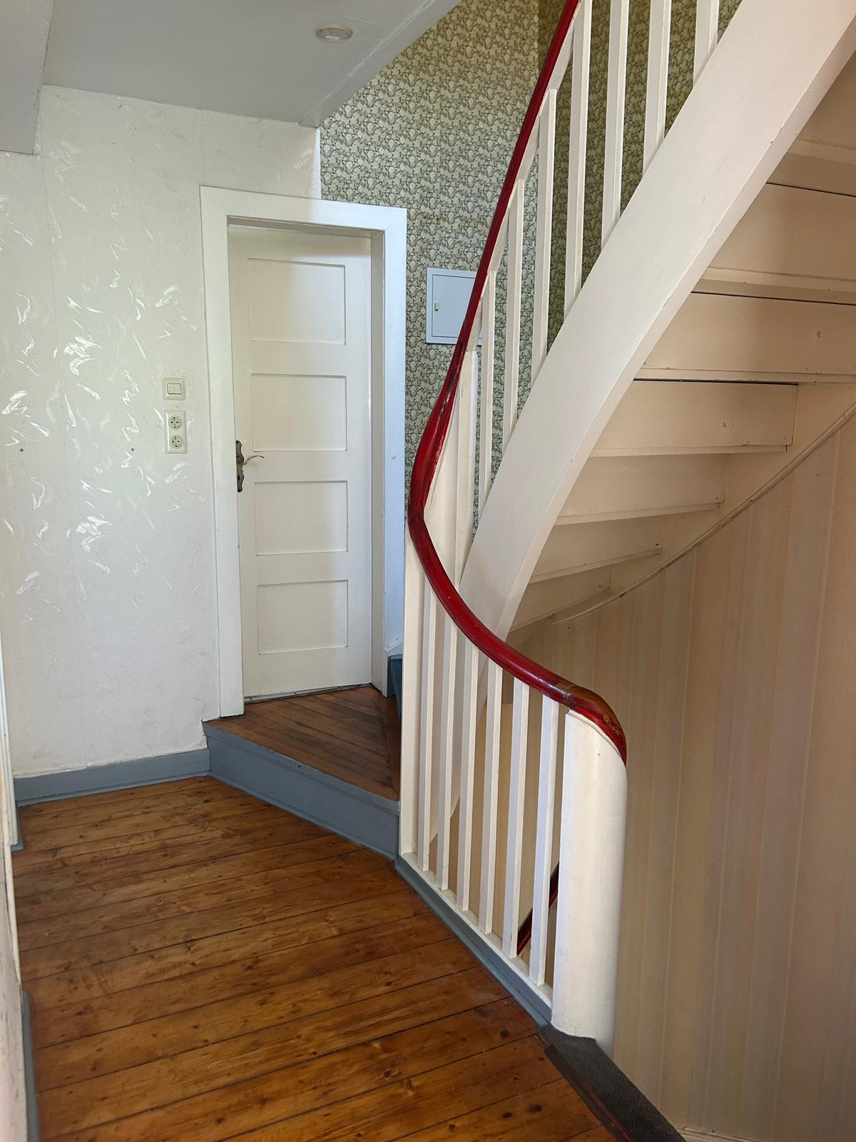 Die Treppenanlage im Gebäude ist als Holzkonstruktion ausgeführt. Zum Keller führt eine massive Innentreppe, zusätzlich ist eine Außentreppe in den Garten vorhanden.